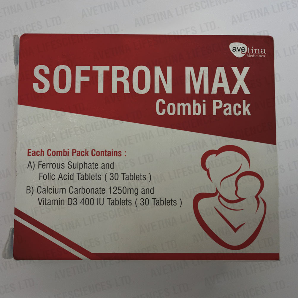 IRON AND FOLIC ACID SUPPLEMENTS FOR WOMEN IN ANEMIA,PREGNANCY SUPPORT | SUPPORTS HAEMOGLOBIN PRODUCTION | VITAMIN D & CALCIUM TABLETS TO SUPPORT STRONG BONES, JOINTS & MUSCLES|SOFTRON MAX COMBI PACK